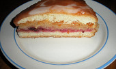 Vychladlé těsto dvakrát prořízneme. Slabou prostřední vrstvu dáme stranou. Zbývající placky pokapeme rumem a spodní placku navíc potřeme marmeládou.